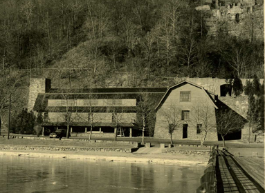 Powerhouse before renovation. Hook Mountain & quarry from old dock — June 1926